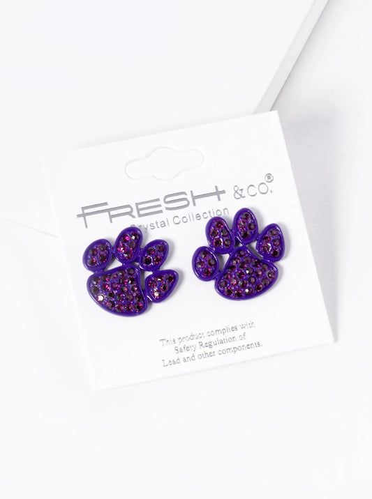Crystal Pave Dog Paw Game Day Mascot Post Stud Earrings