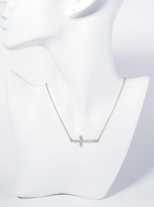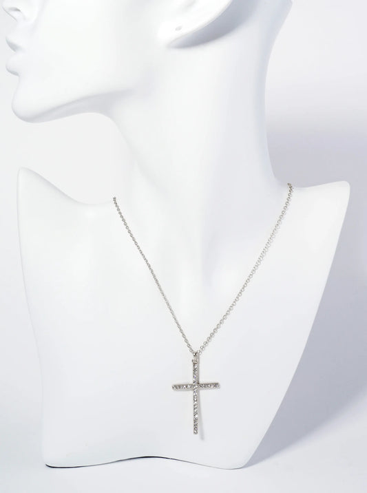 Crystal Pave One And Half Inch Cross Pendant Necklace