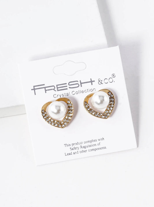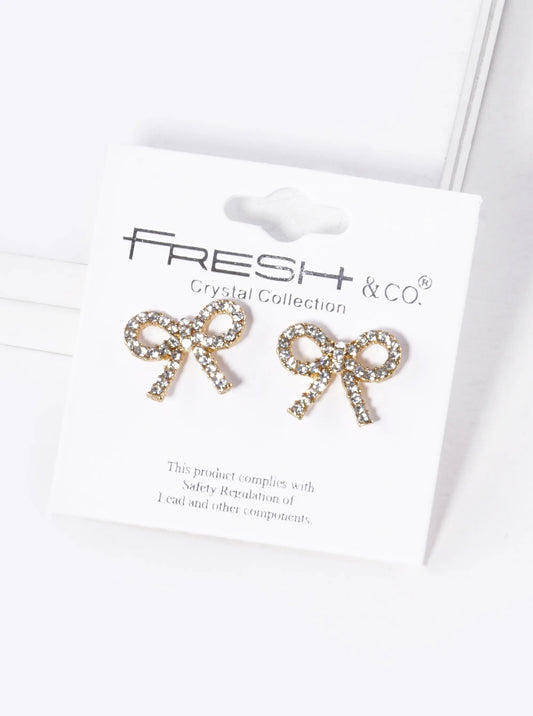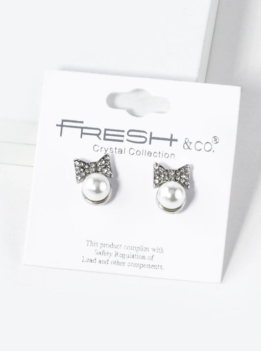 Crystal Pave Ribbon Bow With Pearl Bead Stud Earrings