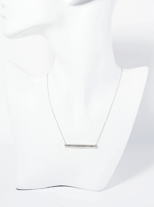 Faith Arrow Engraved Vertical Bar Pendant Inspirational Necklace