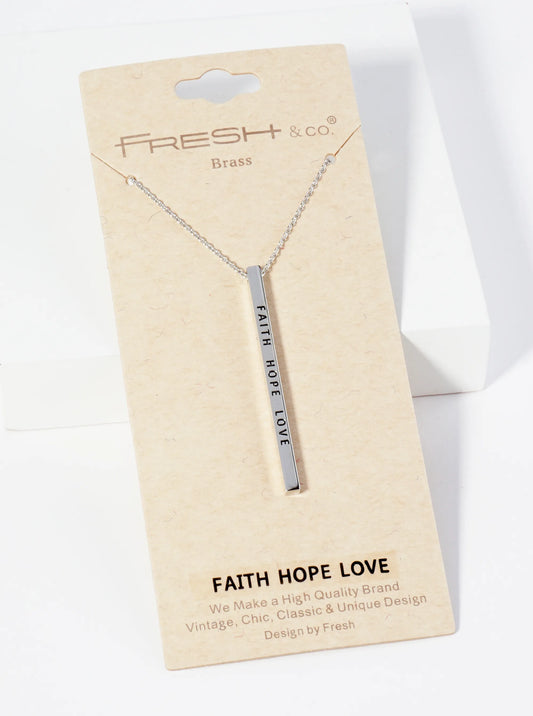 Faith Hope Love Engraved Vertical Bar Pendant Inspirational Necklace