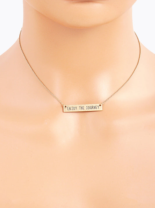 Enjoy The Journey Engraved Horizontal Bar Pendant Necklace