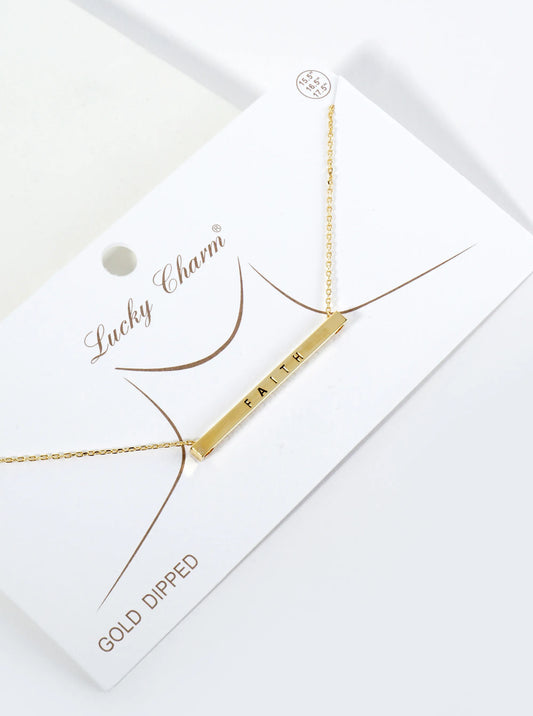 Faith Engraved 18K Gold Dipped Horizontal Brass Bar Pendant Inspirational Necklace