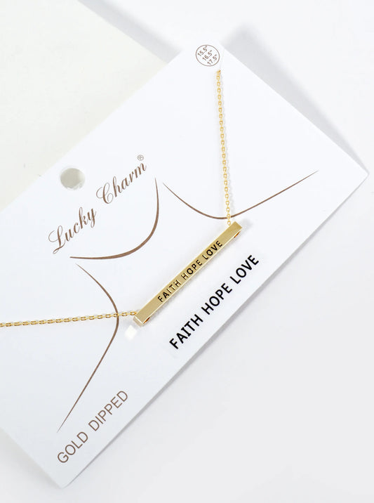 Faith Hope Love Engraved 18K Gold Dipped Horizontal Brass Bar Pendant Inspirational Necklace