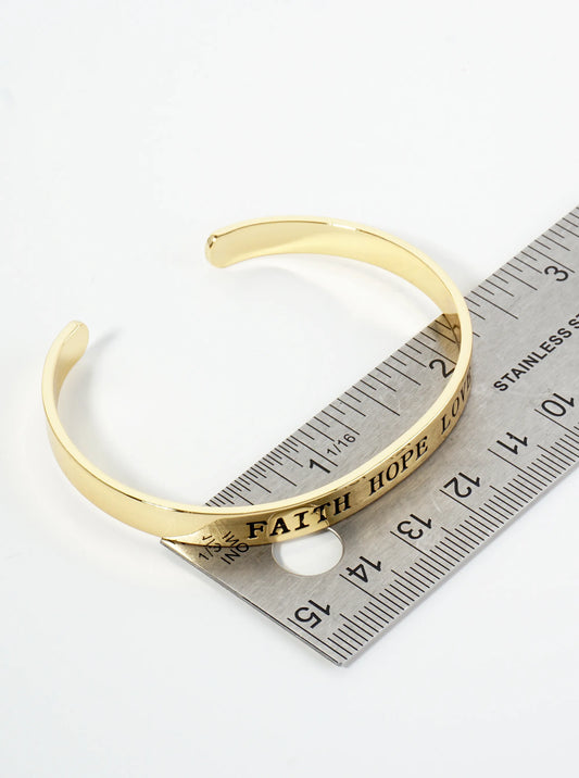 Faith Hope Love Engraved 18K Gold Dipped Open Cuff Bangle Bracelet
