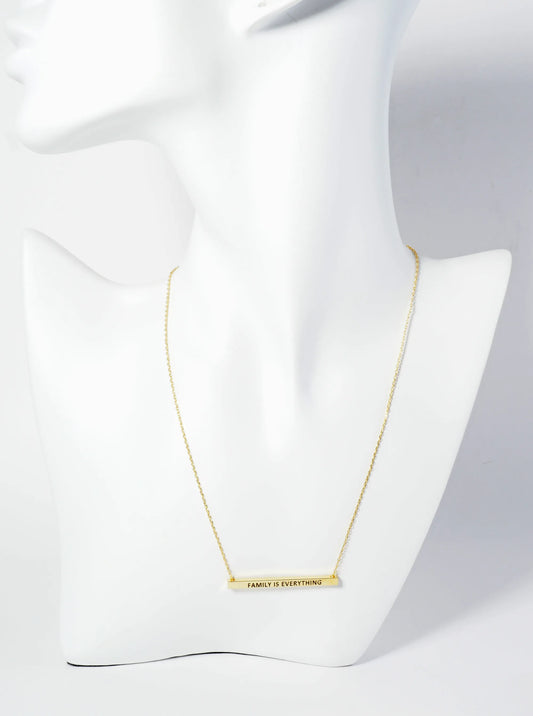 Family Is Everything Engraved 18K Gold Dipped Horizontal Brass Bar Pendant Inspirational Necklace