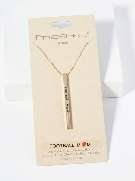 Football Mom Engraved Horizontal Bar Pendant Necklace
