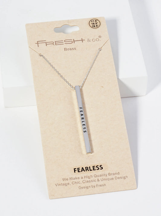 Fearless Engraved Vertical Bar Pendant Inspirational Necklace
