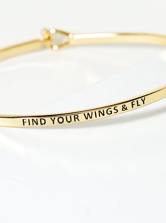 Find Your Wings And Fly Engraved Inspirational Bangle Bracelet