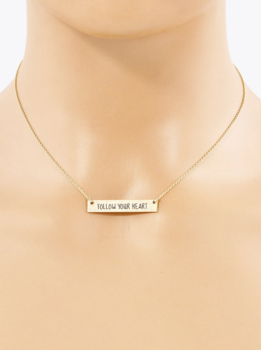 Follow Your Heart Engraved Horizontal Bar Pendant Necklace