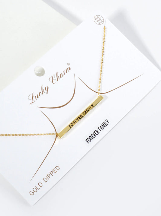 Forever Family Engraved 18K Gold Dipped Horizontal Brass Bar Pendant Inspirational Necklace