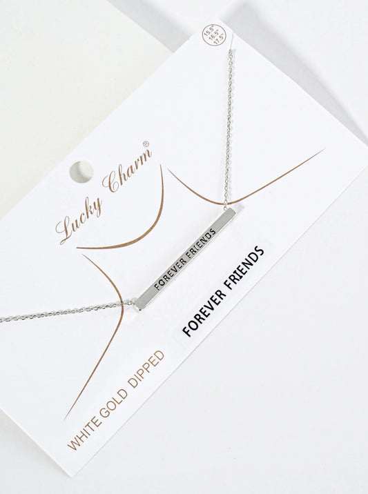 Forever Friends Engraved Vertical Bar Pendant Inspirational Necklace