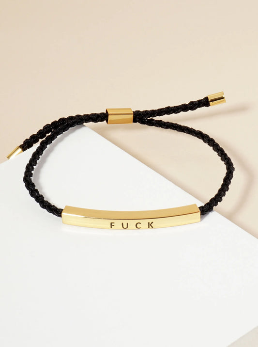 Fuck Engraved 18K Gold Dipped Curved Brass Tube Bar Adjustable Pull Tie Bracelet