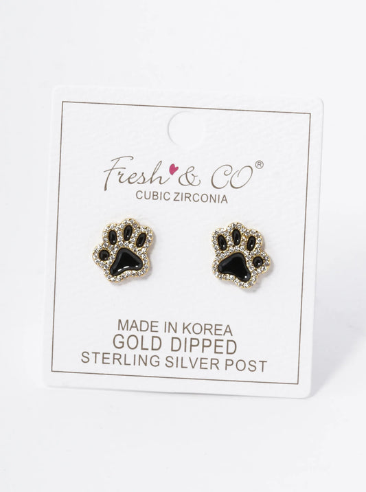 Game Day Mascot 18K Gold Dipped Micro Pave Set Cubic Zirconia 13mm Enamel Paw Stud Earrings