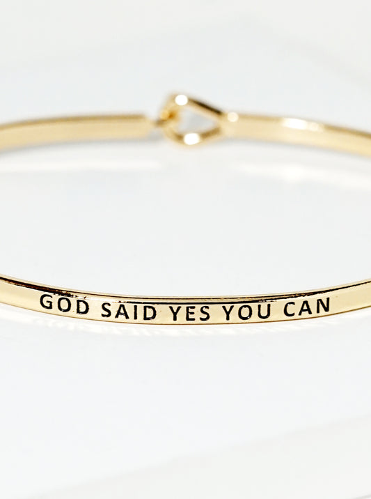 God Said Yes You Can Engraved Inspirational Bangle Bracelet