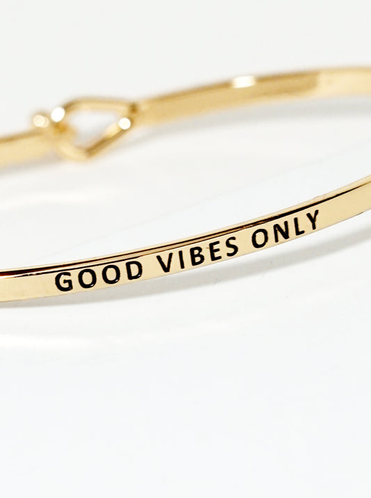 Good Vibes Only Engraved Inspirational Bangle Bracelet