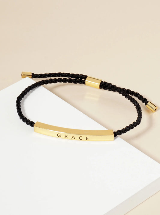 Grace Engraved 18K Gold Dipped Curved Brass Tube Bar Adjustable Pull Tie Bracelet