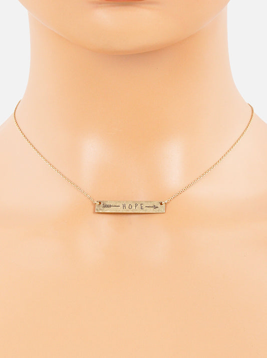 Hope Arrow Engraved Horizontal Bar Pendant Necklace
