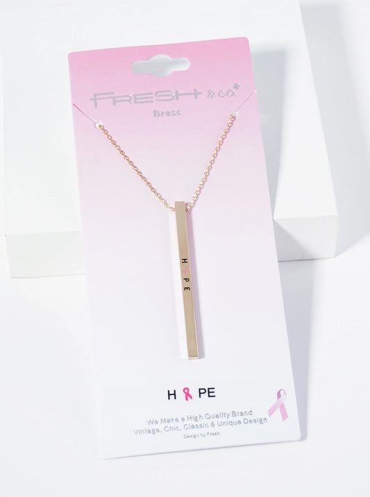 Hope Pink Ribbon Engraved Vertical Bar Pendant Inspirational Necklace