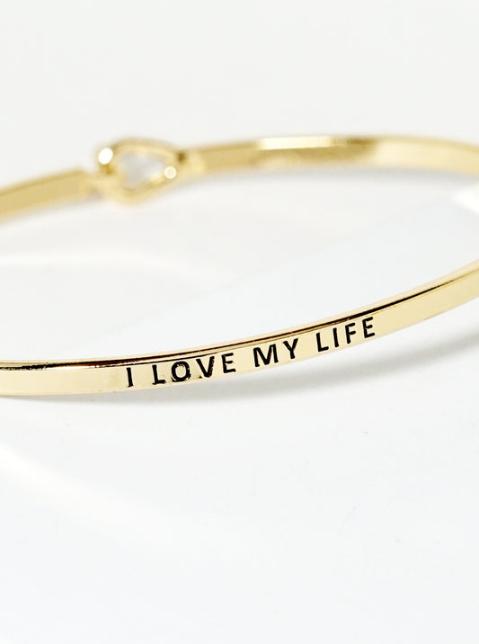 I Love My Life Engraved Inspirational Bangle Bracelet
