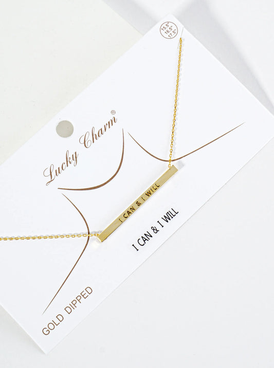 I Can And I Will Engraved 18K Gold Dipped Horizontal Brass Bar Pendant Inspirational Necklace
