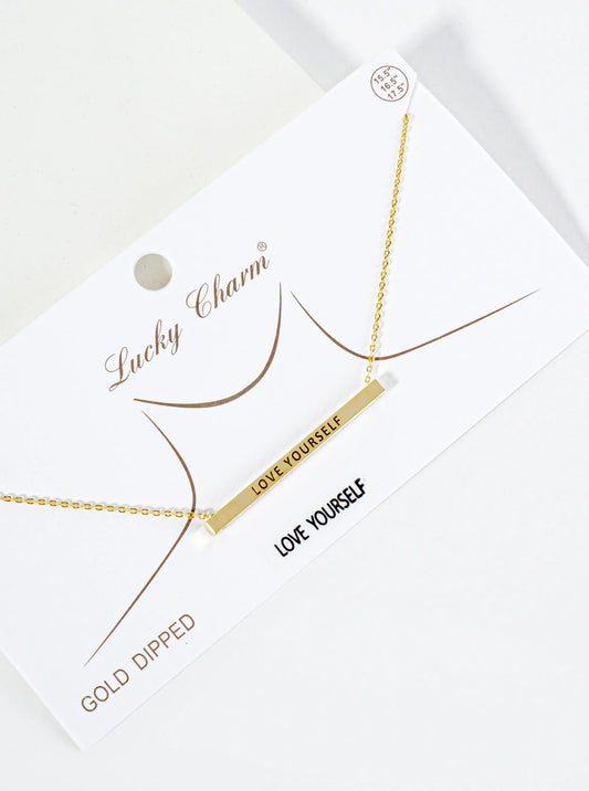 Love Yourself Engraved 18K Gold Dipped Horizontal Brass Bar Pendant Inspirational Necklace