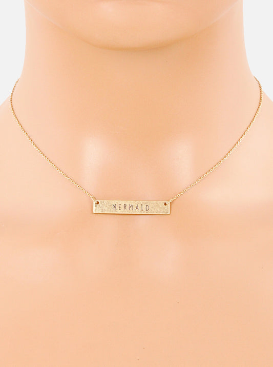 Mermaid Engraved Horizontal Bar Pendant Necklace