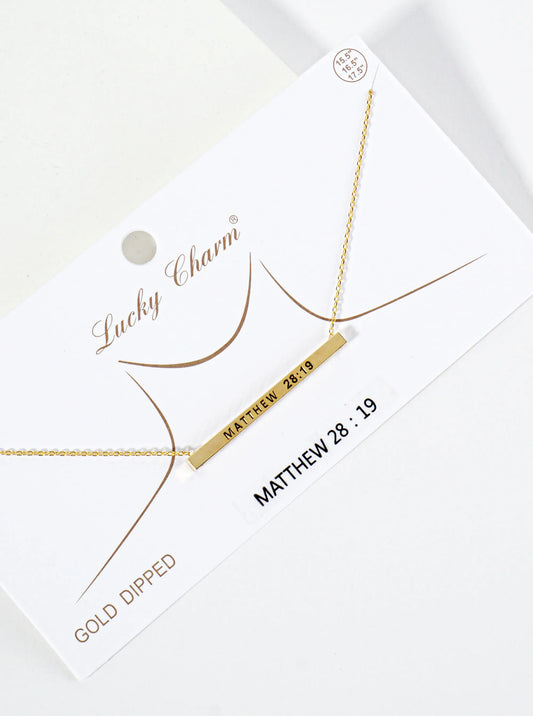 Matthew 28 19 Engraved 18K Gold Dipped Horizontal Brass Bar Pendant Inspirational Necklace