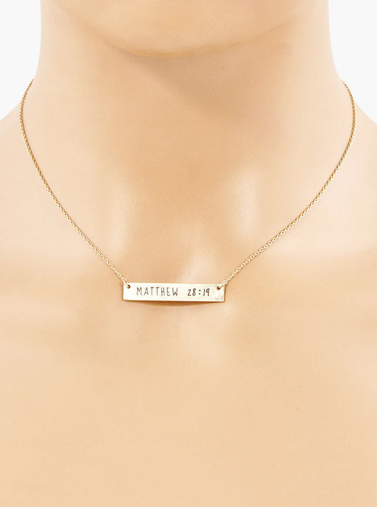 Matthew 28 19 Engraved Horizontal Bar Pendant Necklace
