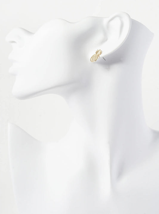 Metal 15mm Filigree Pineapple Tropical Stud Earrings
