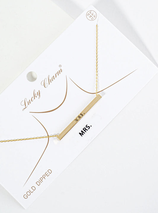 Mrs Engraved 18K Gold Dipped Horizontal Brass Bar Pendant Inspirational Necklace