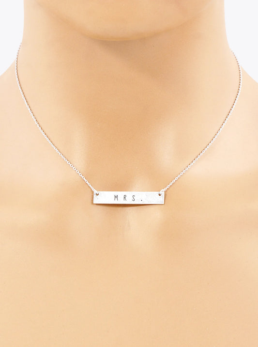 Mrs Engraved Horizontal Bar Pendant Necklace