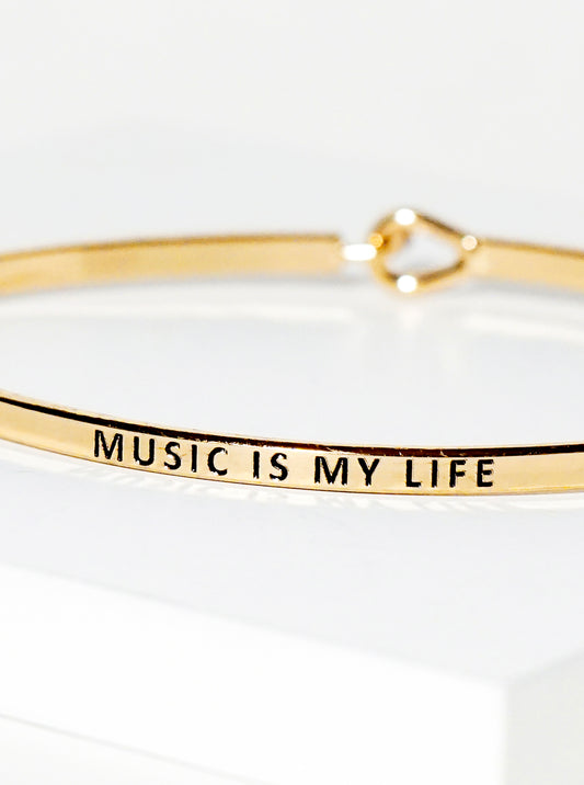 Music Is My Life Engraved Inspirational Bangle Bracelet