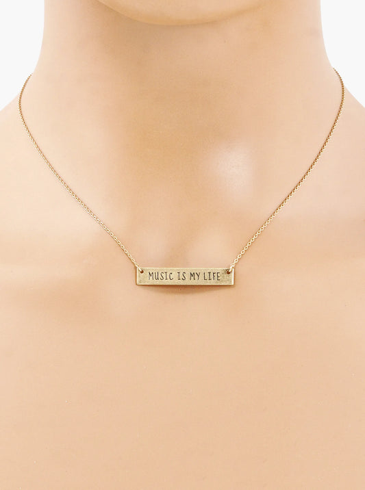 Music Is My Life Engraved Horizontal Bar Pendant Necklace