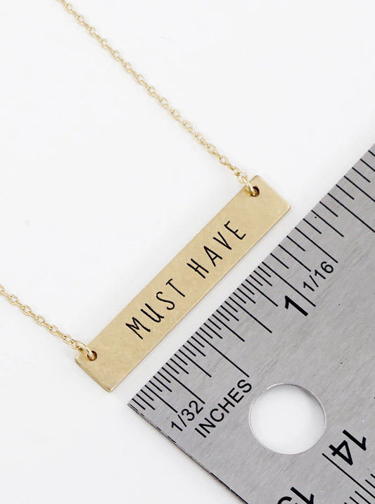 Must Have Engraved Horizontal Bar Pendant Necklace