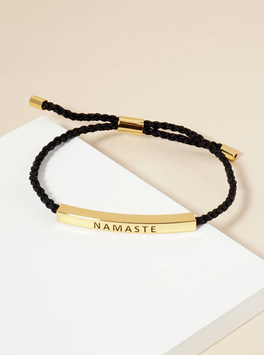 Namaste Engraved 18K Gold Dipped Curved Brass Tube Bar Adjustable Pull Tie Bracelet