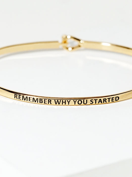 Remember Why You Started Engraved Inspirational Bangle Bracelet