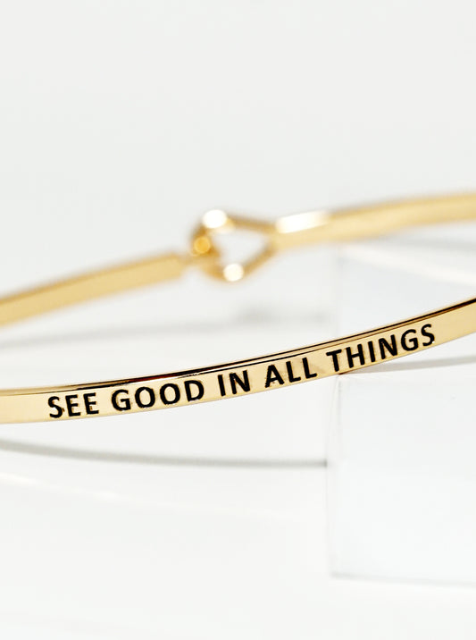 See Good In All Things Engraved Inspirational Bangle Bracelet