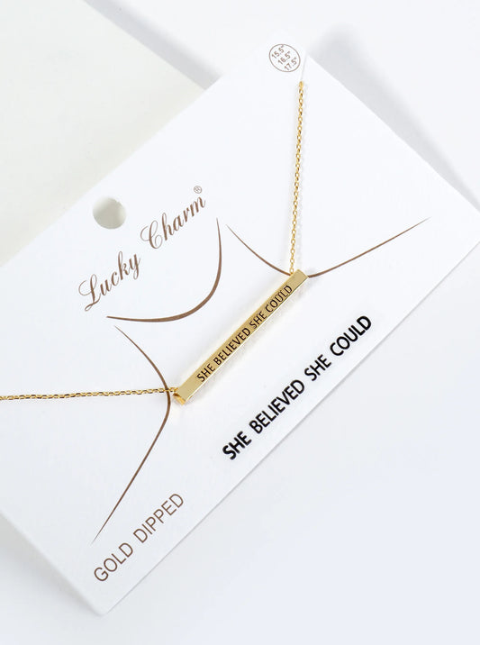 She Believed She Could Engraved 18K Gold Dipped Horizontal Brass Bar Pendant Inspirational Necklace