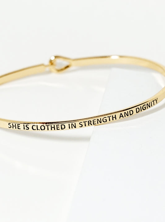 She Is Clothed In Strength And Dignity Engraved Inspirational Bangle Bracelet
