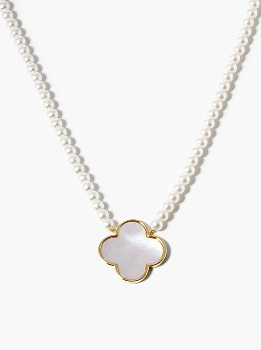 White Gold Dipped 20mm Mother Of Pearl Quatrefoil Pendant Necklace