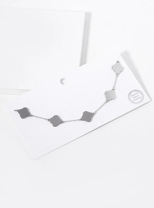 White Gold Dipped 12mm Five Quatrefoil Necklace