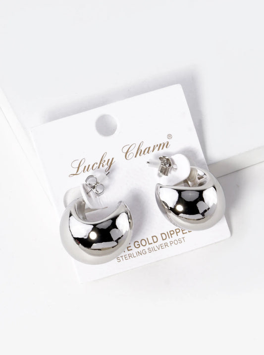 White Gold Dipped 22mm Hollow Puffy Hoop Earrings