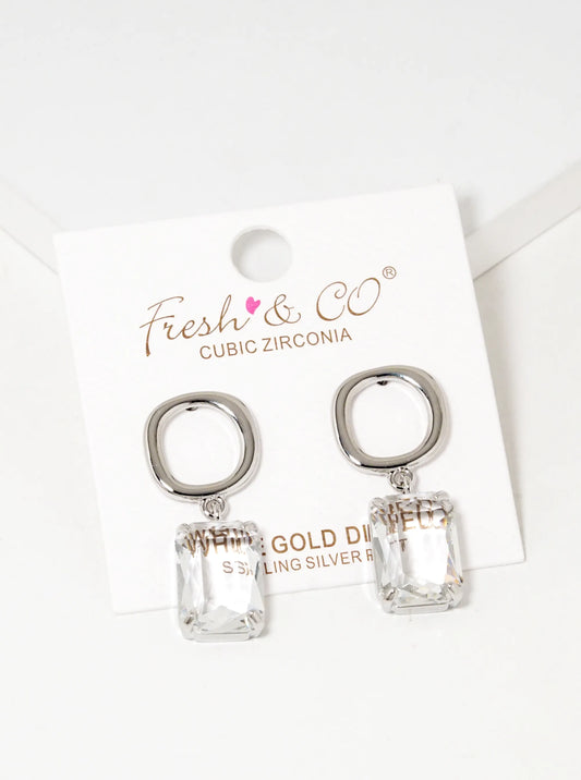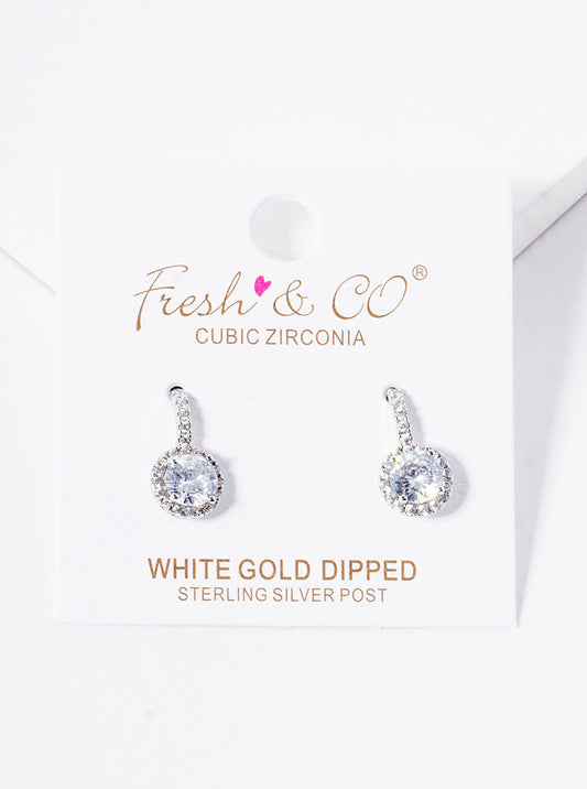White Gold Dipped 13mm CZ Drop Dangle Earrings
