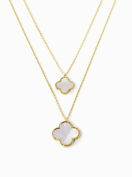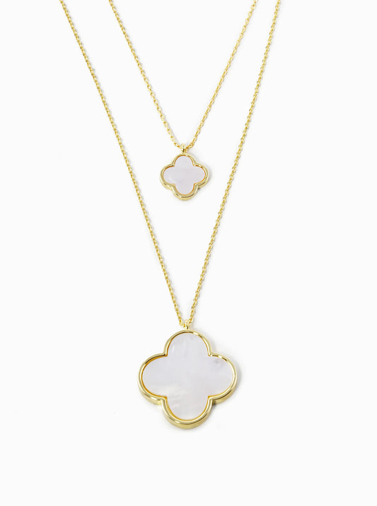 White Gold Dipped 22 And 12mm Double Quatrefoil Pendant Layered Necklace