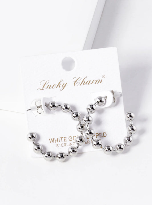 White Gold Dipped 25mm Ball Hoop Earrings