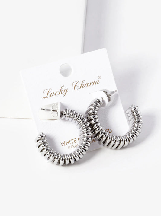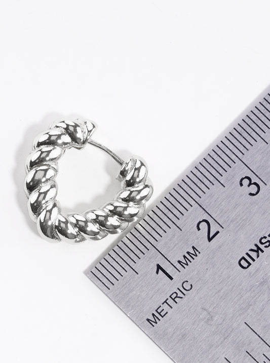 White Gold Dipped Braided Metal Heart Shape 20mm Hinged Hoop Earrings
