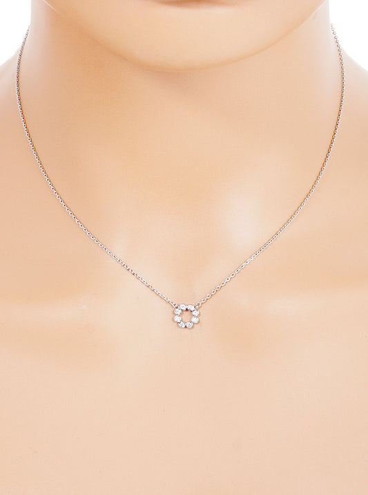 White Gold Dipped Bezel CZ Circle Pendant Delicate Necklace