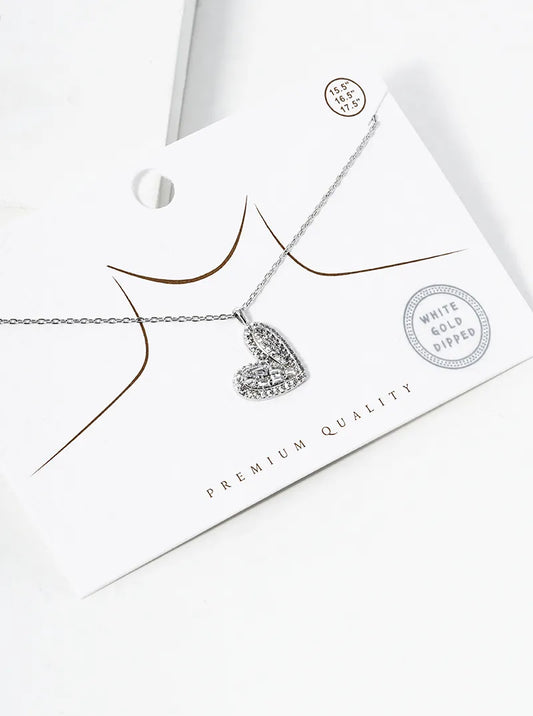 White Gold Dipped 5mm CZ Stone Heart Pendant Necklace