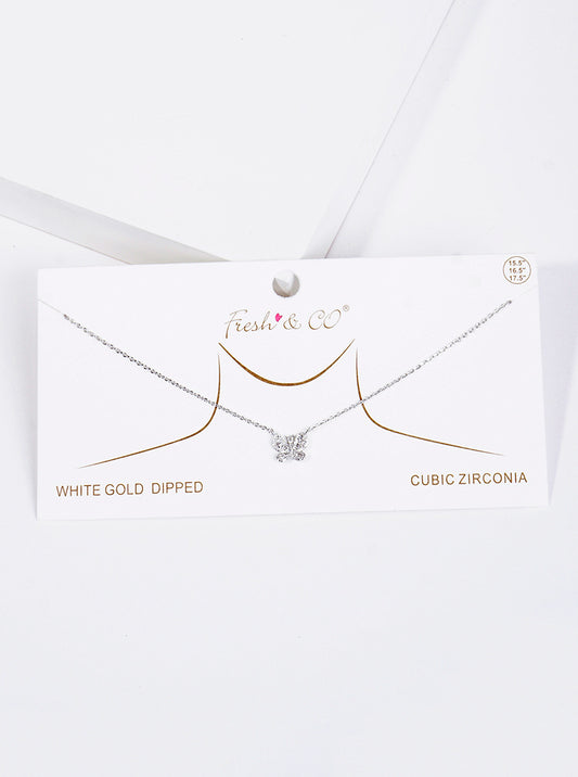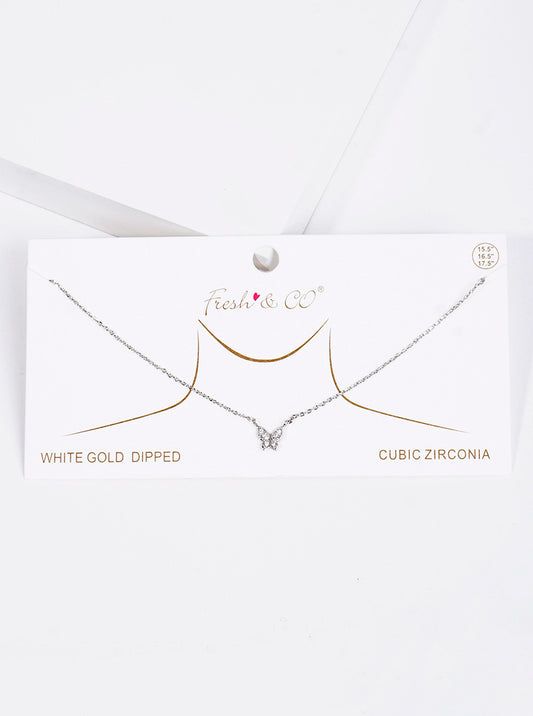 White Gold Dipped CZ Butterfly Pendant Necklace